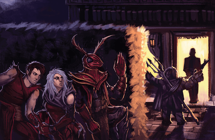 Para esta aventura rápida, serão ofertados quatro personagens de quarto nível, que segue o mesmo modelo da passada, complete o número faltantes com NPCs. Zerryd é um estrige, ladino, que divide o protagonismo com Takemiru, é um Kitsune, patrulheiro. As outras duas companheiras são Jaithe, uma mutacarne, feiticeira e Kellsti, uma kobold, clériga de Noctícula.