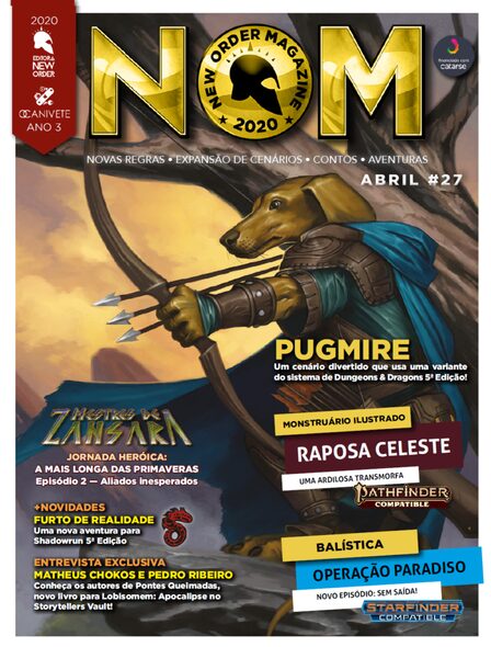 Em frente, aventureiros! Chegamos em Abril com muitas novidades para todos os assinantes e fãs de nossos títulos de RPG. Na edição que você tem em mãos, trazemos a continuação de diversas aventuras, incluindo nossa Jornada Heróica de Mestres de Zansara©. Nas próximas páginas, você irá conhecer um pouco mais sobre Pugmire RPG, próximo lançamento da New Order Editora bem como ficará intera-do das promoções que estamos realizando na loja virtual.