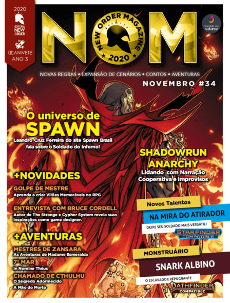 Sobre Chamado de Cthulhu, levamos você novamente até a cidade de Lakewood onde outro incidente estranho levará os seus investigadores ao limiar da loucura. Essa aventura pode servir como one-shot ou continuação de outra já publicada em nossa revista. Para deixar as coisas mais horripilantes, trazemos até seu conhecimento as atividades de um culto bizarro em Los Angeles cuja influência na cidade o transforma em um adversário recorrente ou ameaça pontual em qualquer campanha, além disso tudo, você vai encontrar uma aventura inédita de Sétimo Mar e dicas importantes para se jogar Shadowrun Anarchy.