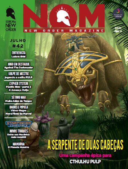 Se você quer conhecer uma nova forma de jogar seu cenário de horror cósmico favorito, não perca a chance de participar desse financiamento, mas sei que nada melhor para lhe convencer disso do que apresentar nessa edição uma resenha sobre a campanha “A Serpente de duas cabeças” de Cthulhu Pulp. Nesta edição temos uma aventura de Sétimo Mar envolvendo os Vesten, novos truques de mecânicos para starfinder roleplaying game e ainda visitaremos Mangória, um planeta exótico de nosso cenário alternativo espacial.
