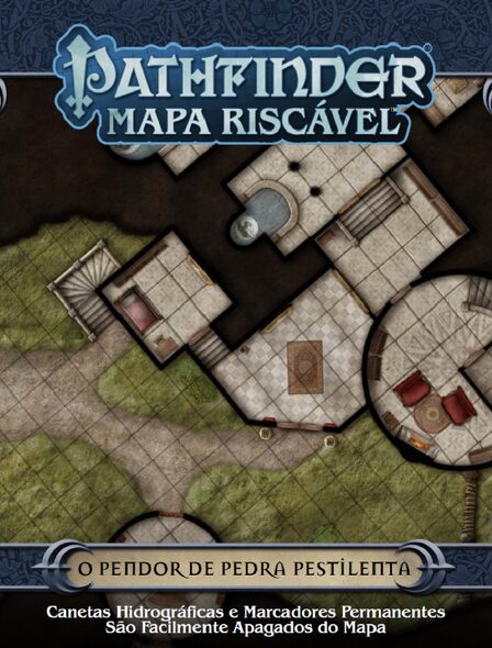 As duas faces apresentam de forma completa o enorme complexo de uma alquimista maligna escondido nas colinas, contendo alojamentos para seus servos, vários laboratórios, baias para conter cobaias testadas e um covil cavernoso! Não desperdice seu tempo desenhando quando poderia estar jogando! Usando o Pathfinder Mapa Riscável: O Pendor de Pedra Pestilenta, você estará pronto para introduzir o novo Pathfinder com estilo!